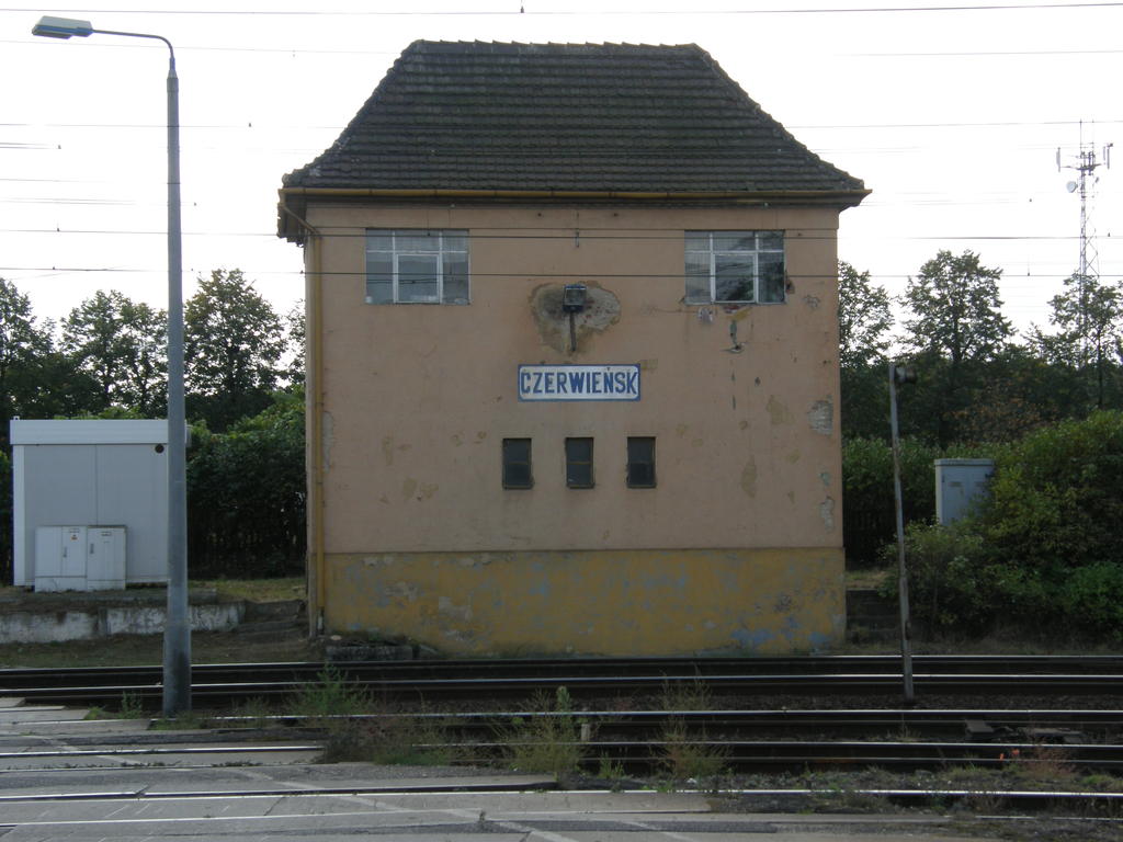 Dawna pocztówka z Czerwieńska, ze zbiorów Miłosza Telesińskiego. Budynek dworca z peronami 3 i 4, dedykowanymi dla obsługi ruchu po lk 358, położonymi po jego południowej stronie. Widok w kierunku północno-wschodnim; w lewo Krosno Odrzańskie/Guben, Rzepin, w prawo Zielona Góra, Sulechów.