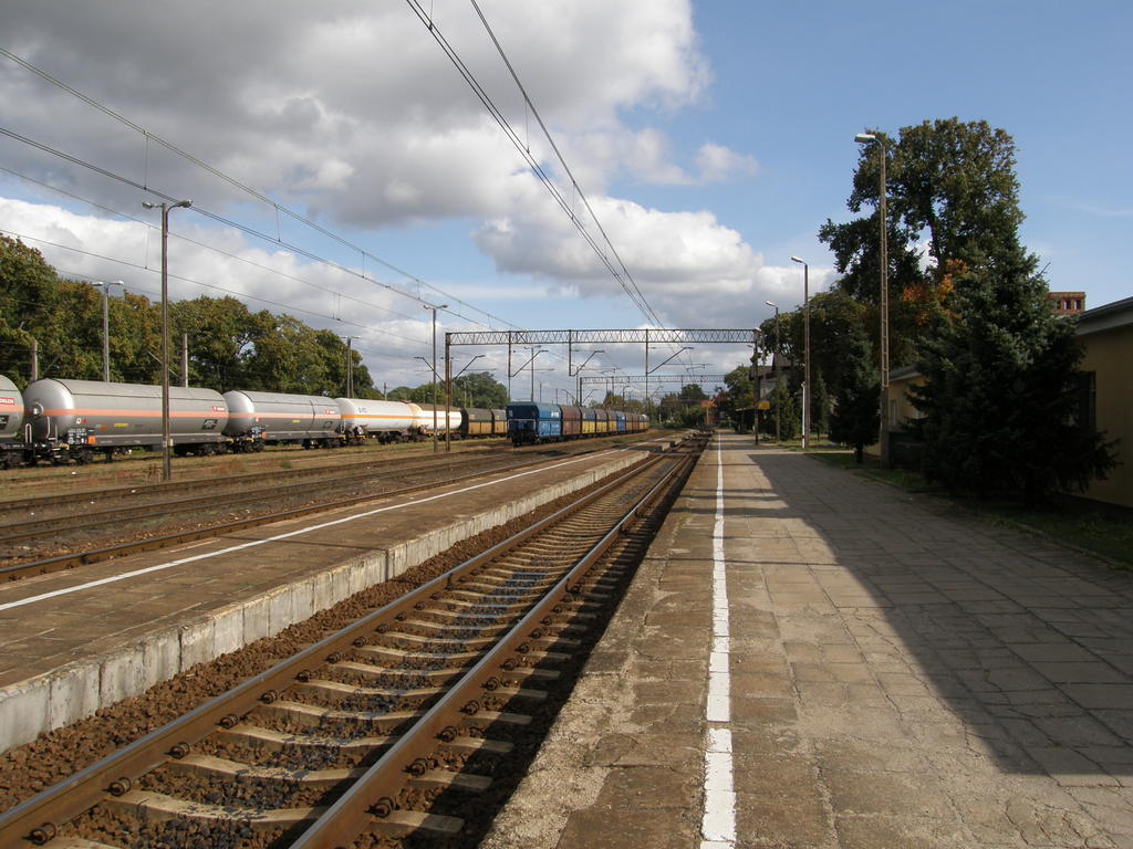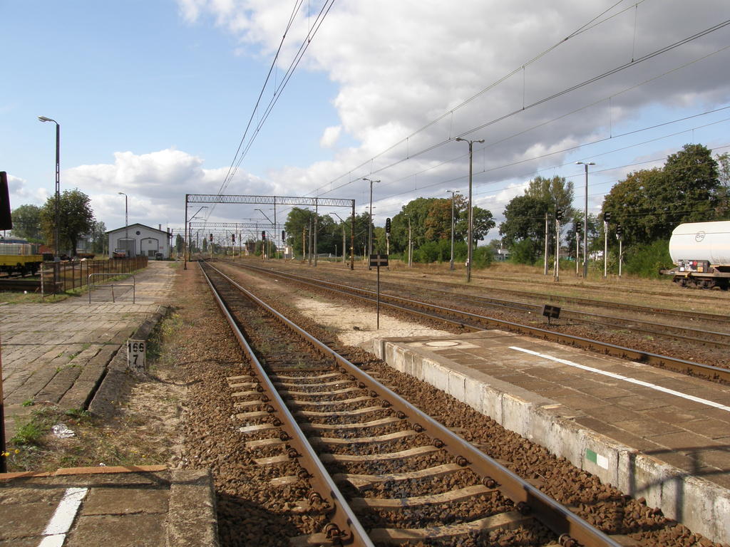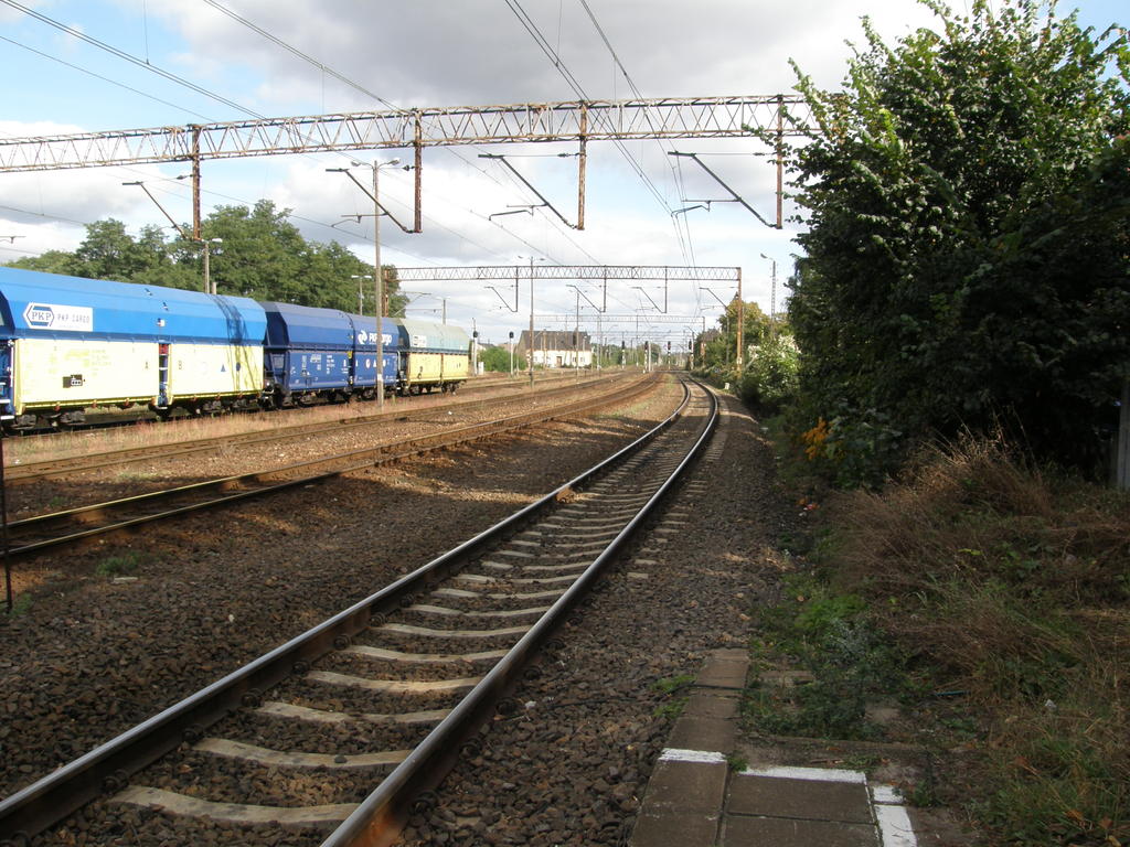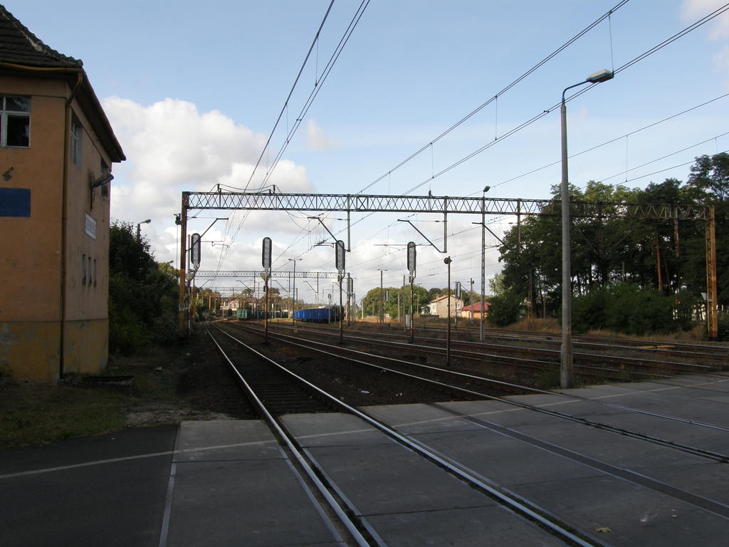 Zdjęcie z peronu 1, obok peron 2; północna strona dworca, przeznaczona dla obsługi ruchu na lk 273. Widok w kierunku zachodnim (Rzepin, Krosno Odrzańskie/Guben). 166,7 km.