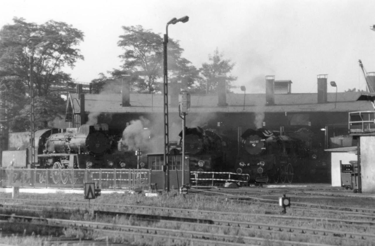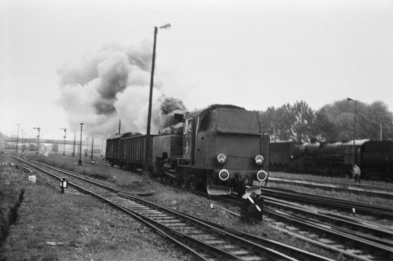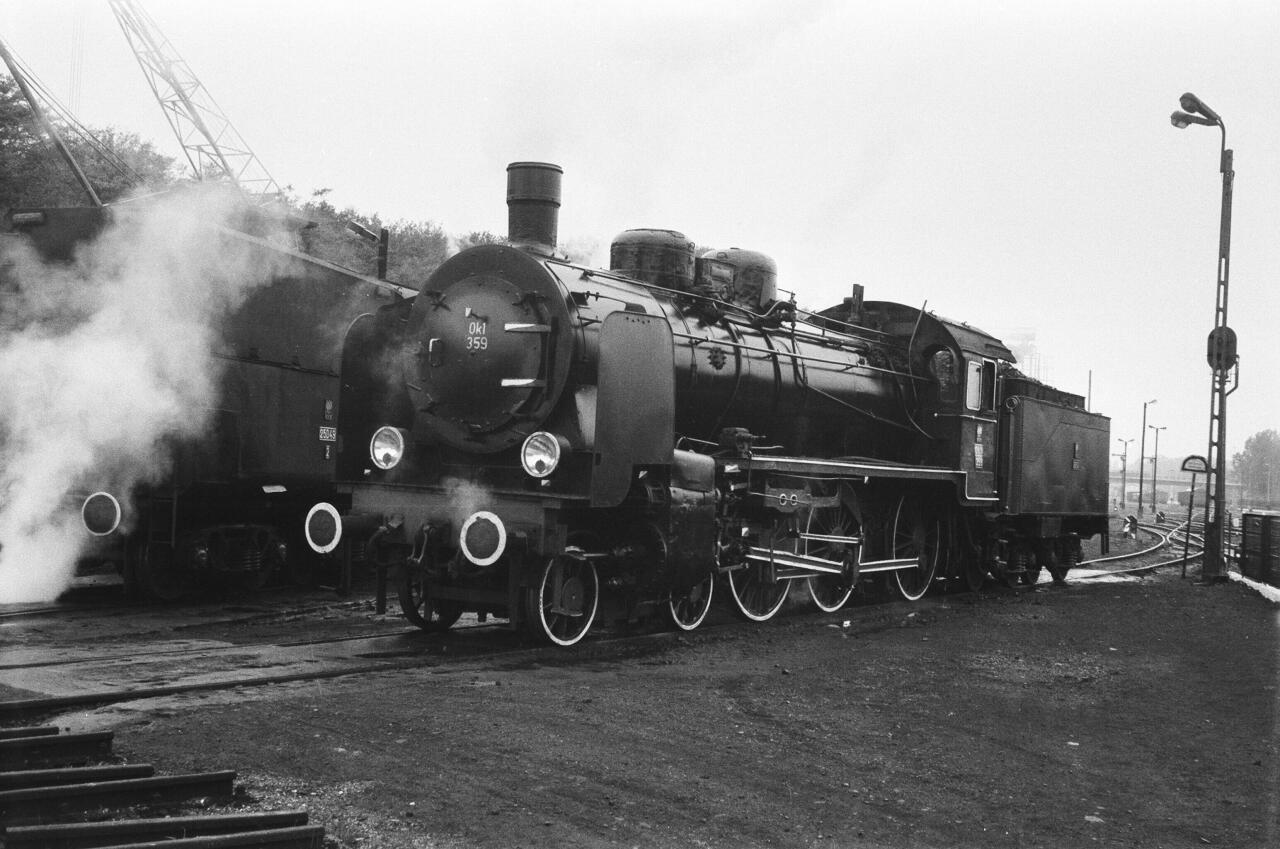 Stacja Wolsztyn (parowozownia) - parowóz Ok1-359 na torze nr 28. Widok w kierunku stacji Sulechów, Zbąszyń.