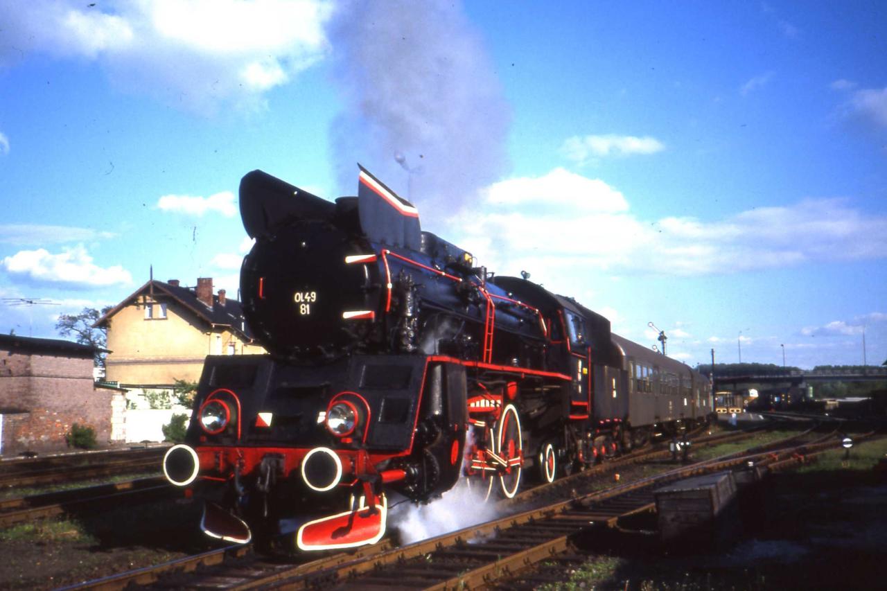 Ok1 ze składem z Sulechowa wjeżdża do Wolsztyna. Obecnie odcinek Wolsztyn - Sulechów jest częściowo rozebrany. Z lewej strony tor ze Zbąszynia.