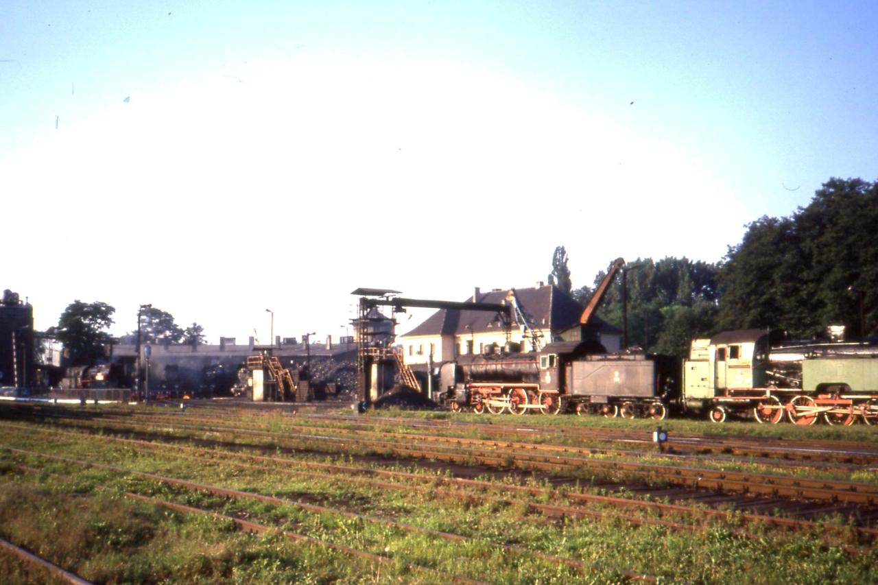 Zaplecze trakcyjne na początku lat 90. XX wieku. Widok w kierunku południowym; w lewo Leszno, Grodzisk Wielkopolski/Poznań, Kolsko/Nowa Sól, w prawo perony