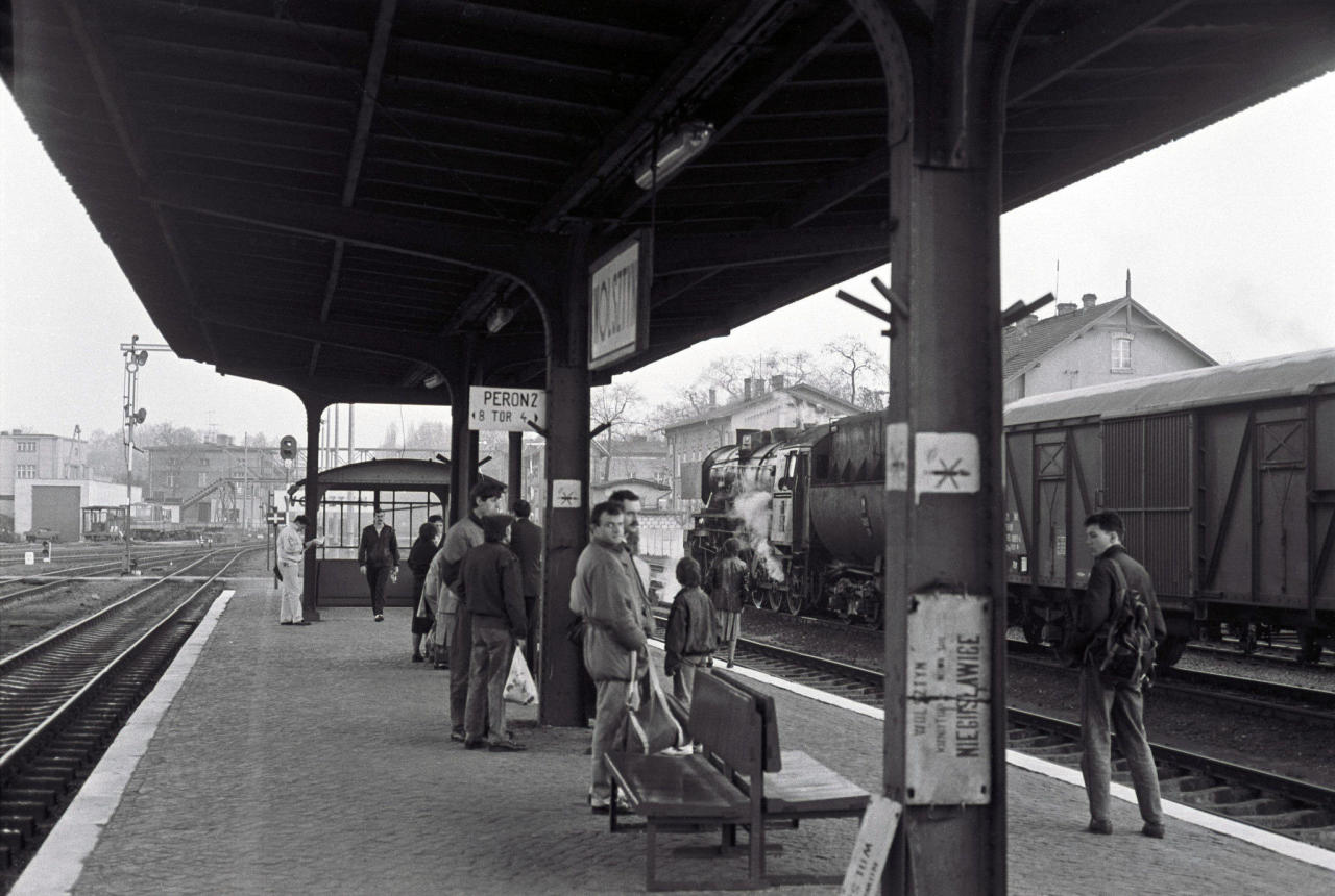 Peron 2 w Wolsztynie u progu lat 90. XX wieku. Widok w kierunku północno-zachodnim (Sulechów, Zbąszyń).