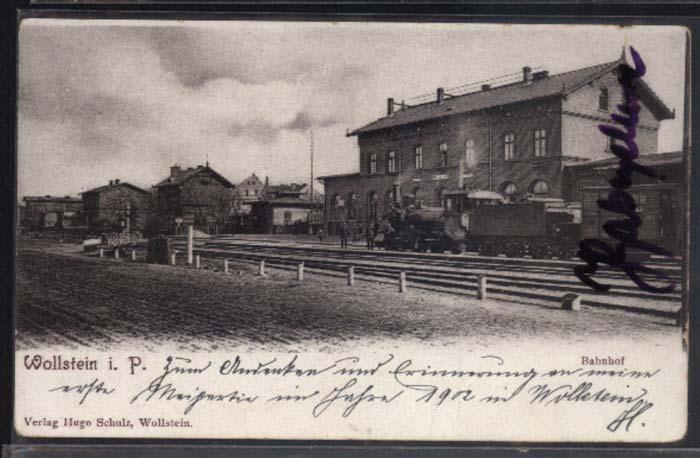 Wolsztyn na dawnej pocztówce ze zbiorów Miłosza Telesińskiego. Przedwojenny budynek dworca. Widok od strony wjazdów z Sulechowa i Zbąszynia.