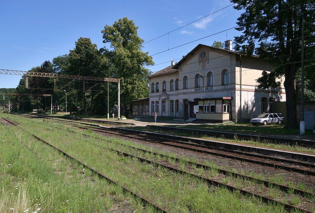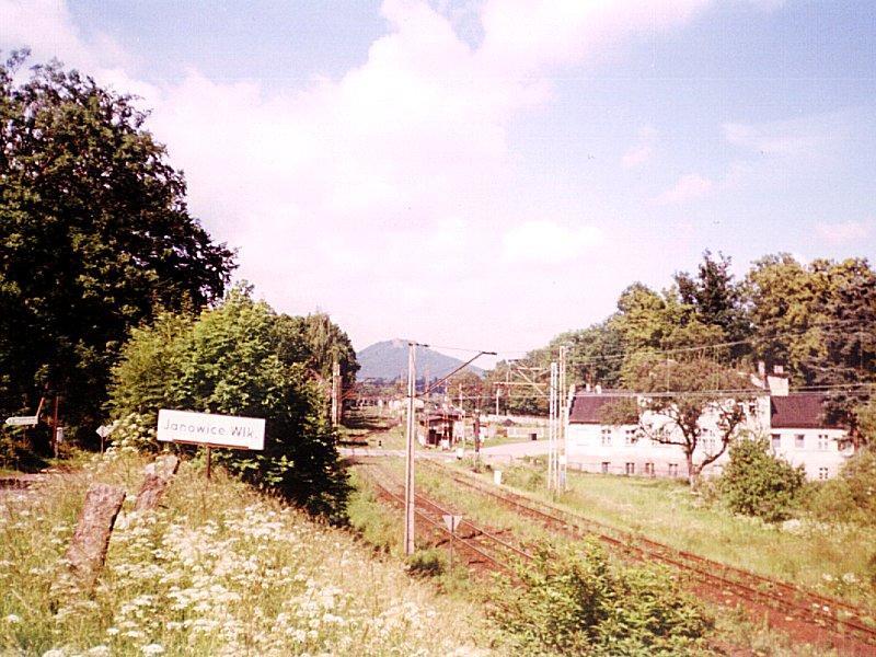Na stacji w Janowicach Wielkich. Zachodnia głowica; w tle widać most nad Borem. Widok w kierunku Jeleniej Góry.