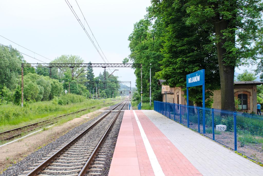 Peron 1 w Wojanowie. Widok w kierunku Jeleniej Góry.