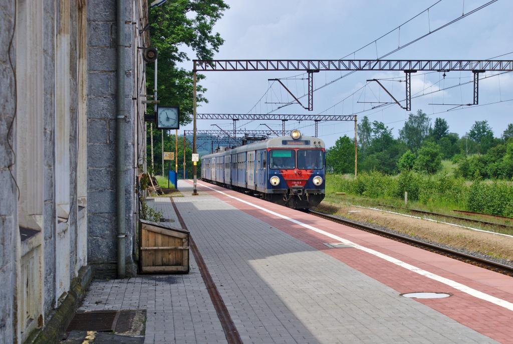 Stacja w Wojanowie. ED72 jako IR Galicja do Krakowa wjeżdża na stację.