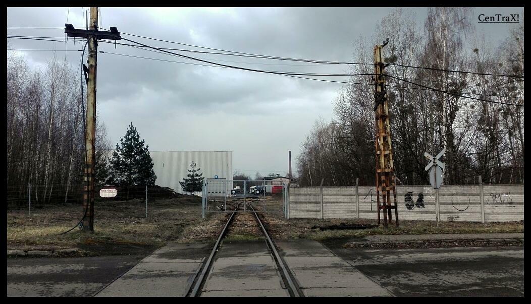 Widok na bramę wjazdowę na bocznicę od strony Chropaczowa. W miejscu gdzie stałem wykonując zdjęcie, dawniej znajdował się również drugi tor prowadzący na bocznicę. Oba tory przecinał lata temu tor PMPPW prowadzący ze stacji kolei piaskowej Marta do szybu Jerzy na Lipinach i KWK Śląsk. Skrzyżowanie było obsługiwane przez posterunek osłonny Śląsk.