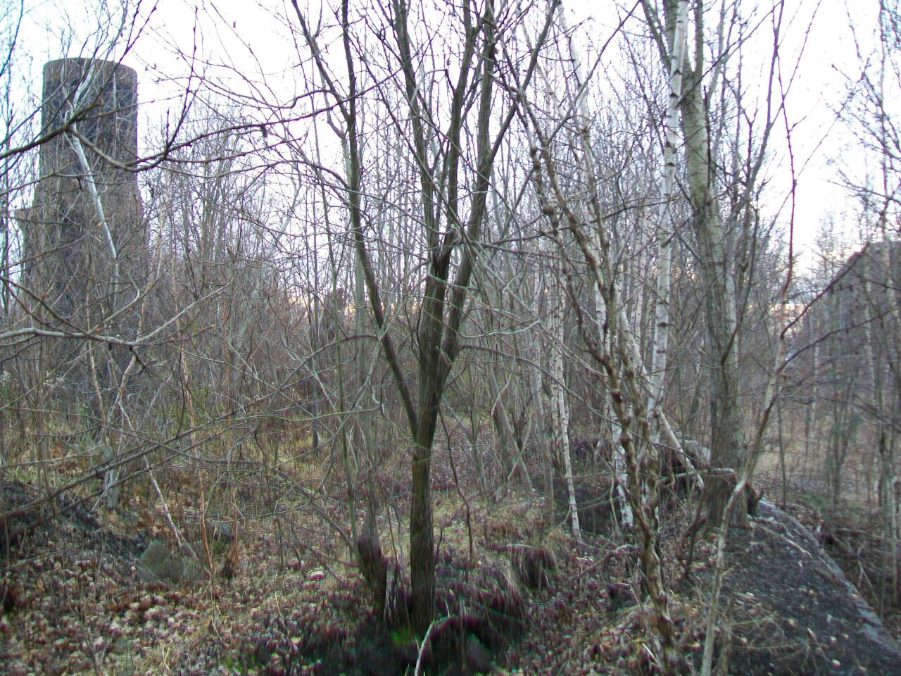 Pozostałości rampy przeładunkowej od strony Kolonii Zygmunt (familok w tle). Widok kierunku północno-wschodnim.