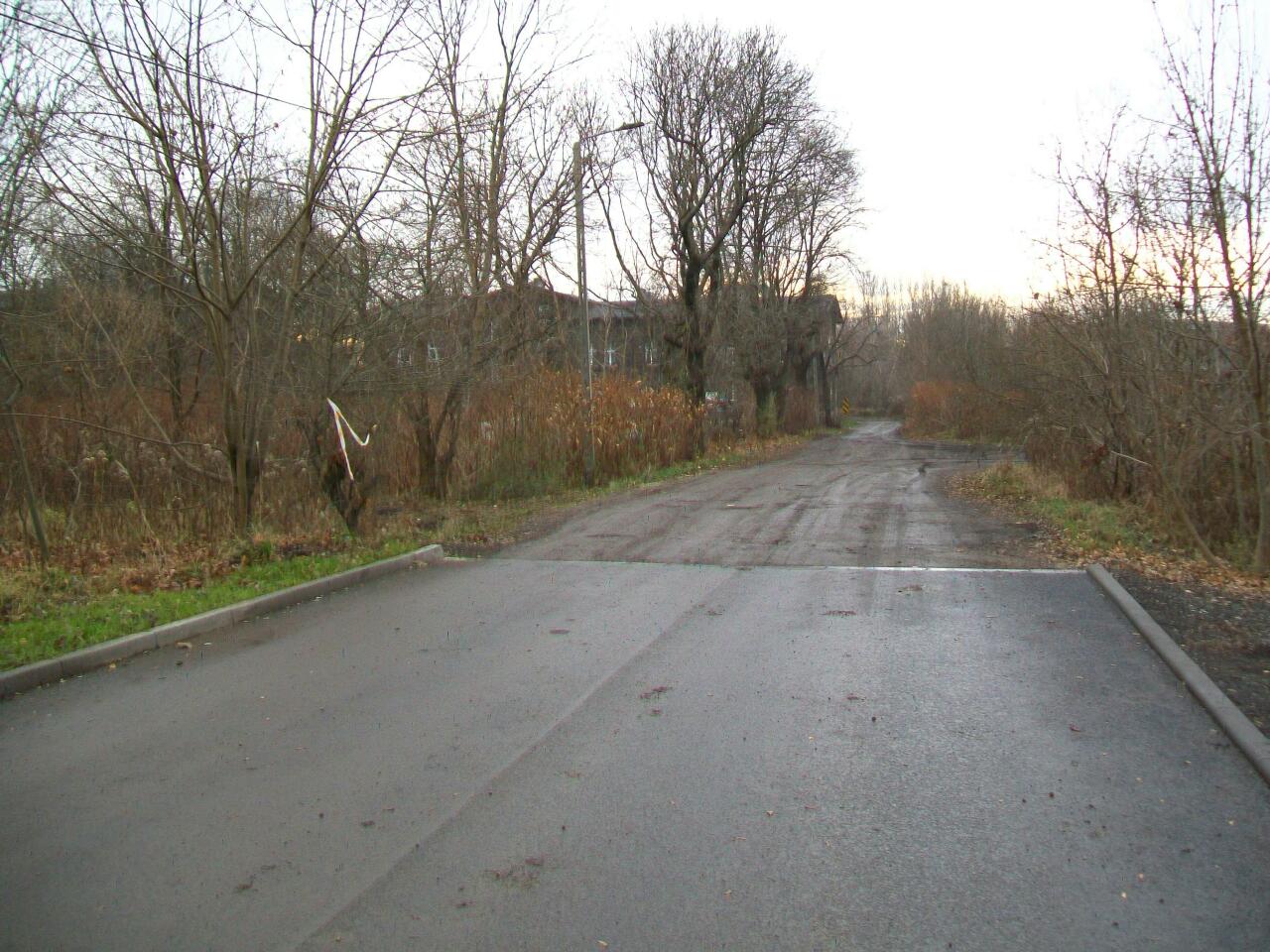 Zlikwidowany wielotorowy przejazd kolejowy przez ul. Szyby Rycerskie (w przebiegu N-S); widok w kierunku zachodnim (dawny wjazd do Huty Zygmunt).