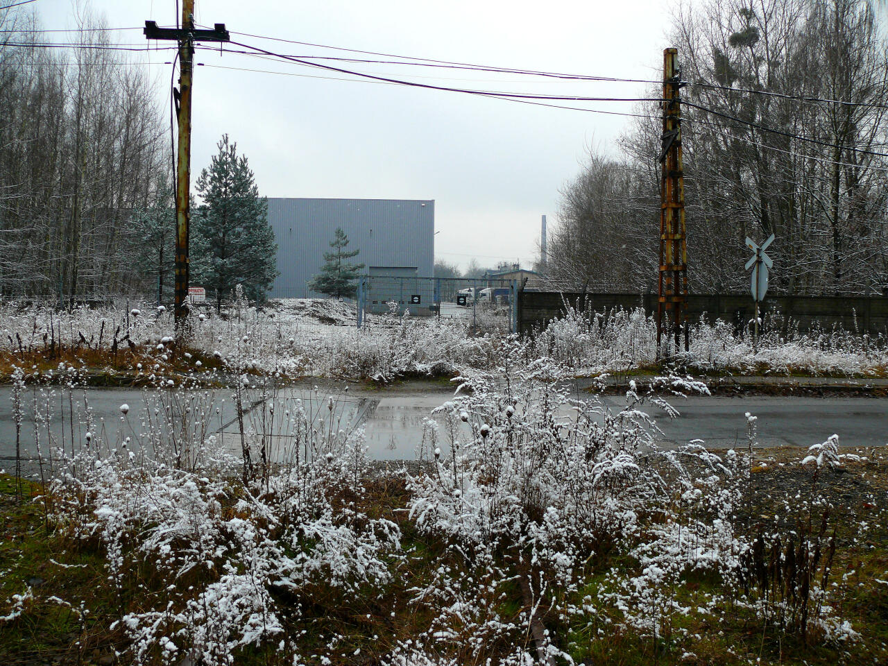 Po wybudowaniu bezpośredniego połączenia toru z Chebzie z halą Accelora widoczny tu tor wyciągowy, w północnej części zakładu, stracił rację bytu i został odcięty od sieci. Widok w kierunku południowym; w tle hala.