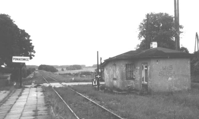 Przystanek Poniatowice. Podlegał wtedy pod zawiadowcę z Jemielnej Oleśnickiej. Widok na peron od strony wjazdu z Sycowa.