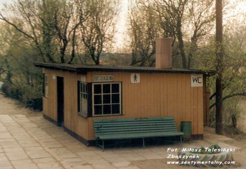 Wjazd na przystanek od strony Sycowa. Z lewej budka dróżnika, z prawej peron z budynkiem gospodarczym i poczekalnią.