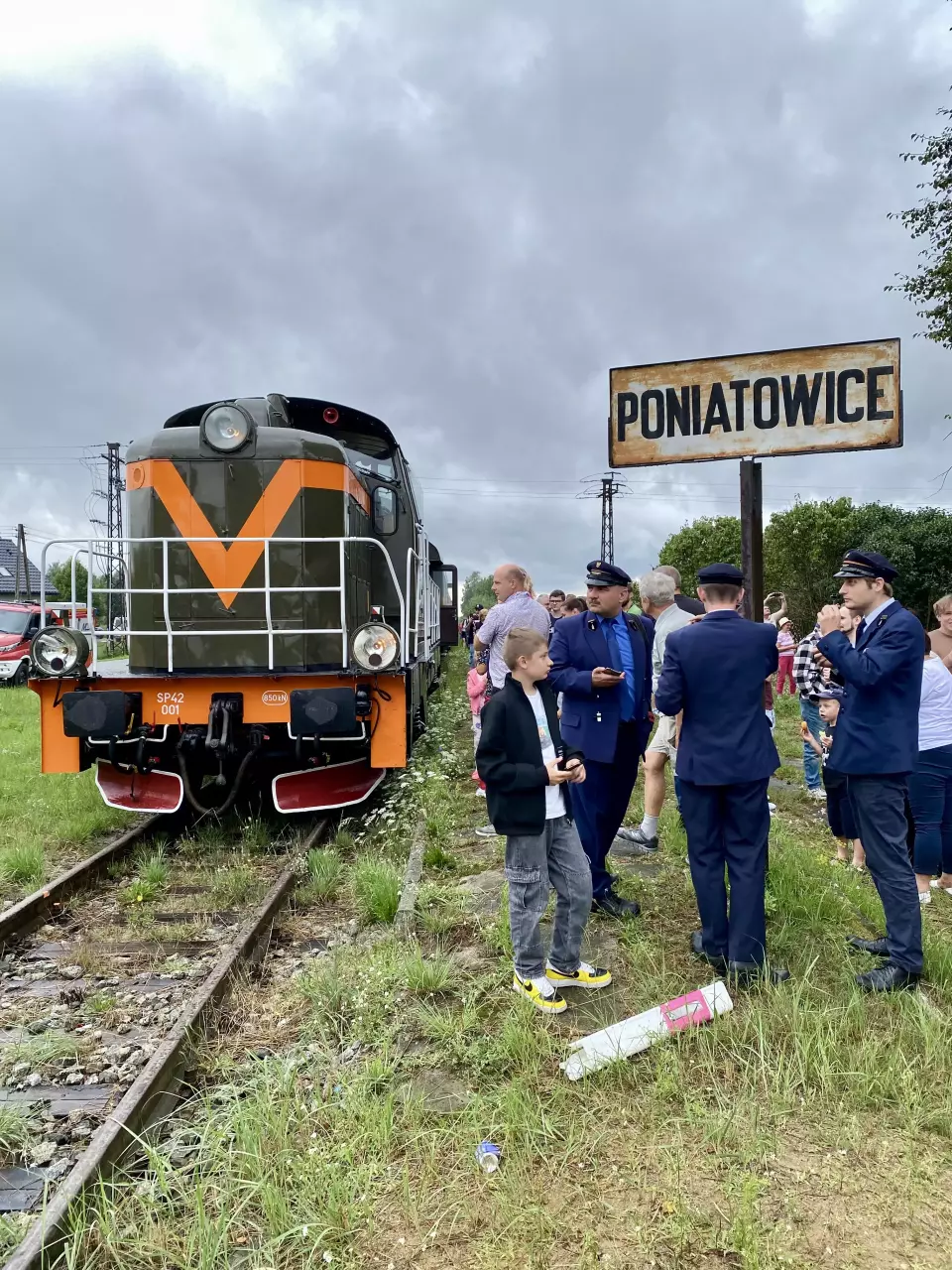 SP 42 001 z turystycznym pociągiem osobowym nr 66211, ze stacji Wrocław Gł. do stacji Kępno, na przystanku Poniatowice. Widok w stronę Oleśnicy/Wrocławia. Pociąg uruchomiony przez Klub Sympatyków Kolei we Wrocławiu, w ramach pożegnania odcinka Oleśnica-Kępno na czas remontu infrastruktury.