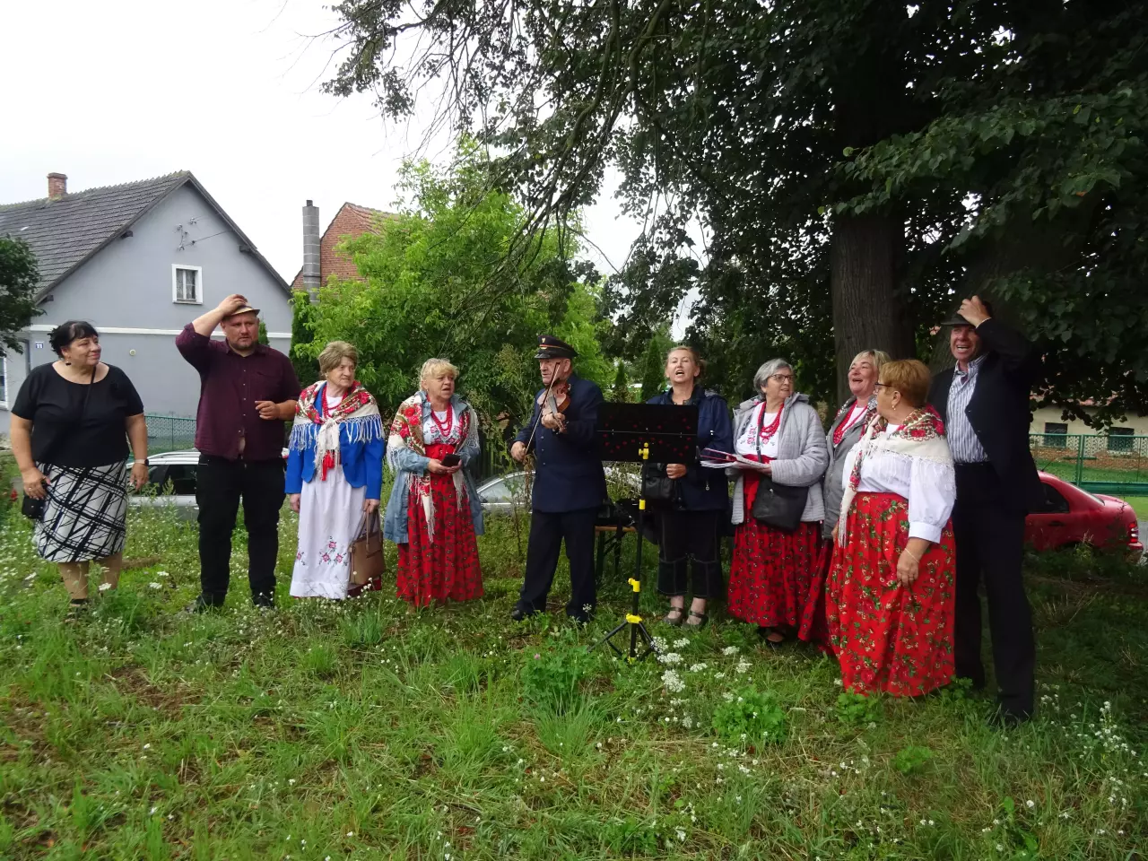 Gospodynie wiejskie na przystanku - reprezentacja powitalna przejazdu pożegnalnego tego odcinka w obecnej formie.