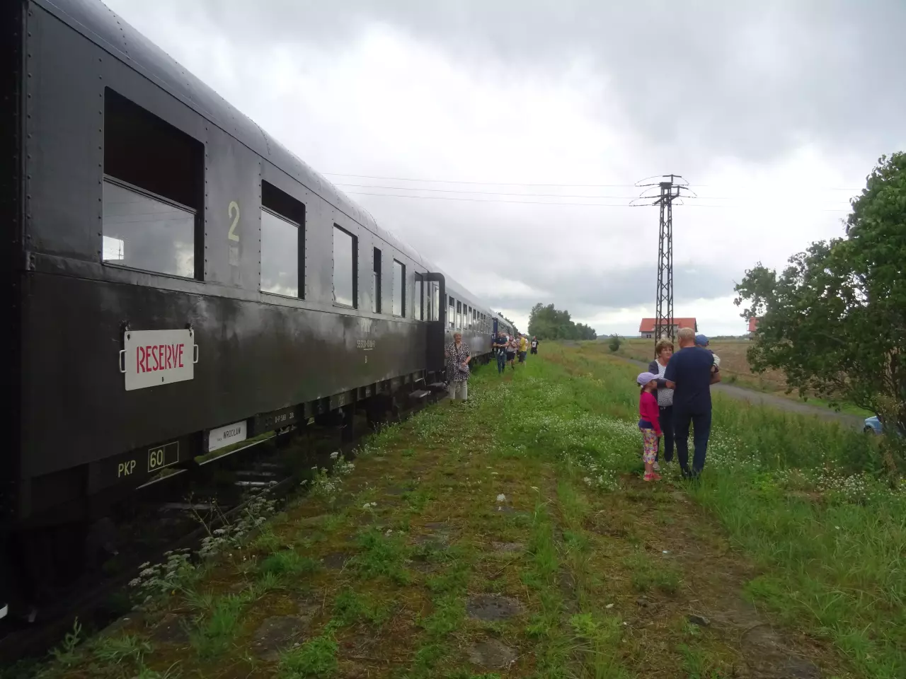 Peron przystanku, na którym stoi pociąg specjalny do Kępna. Widok w kierunku Oleśnicy.