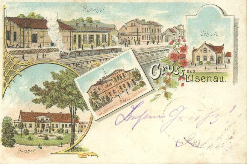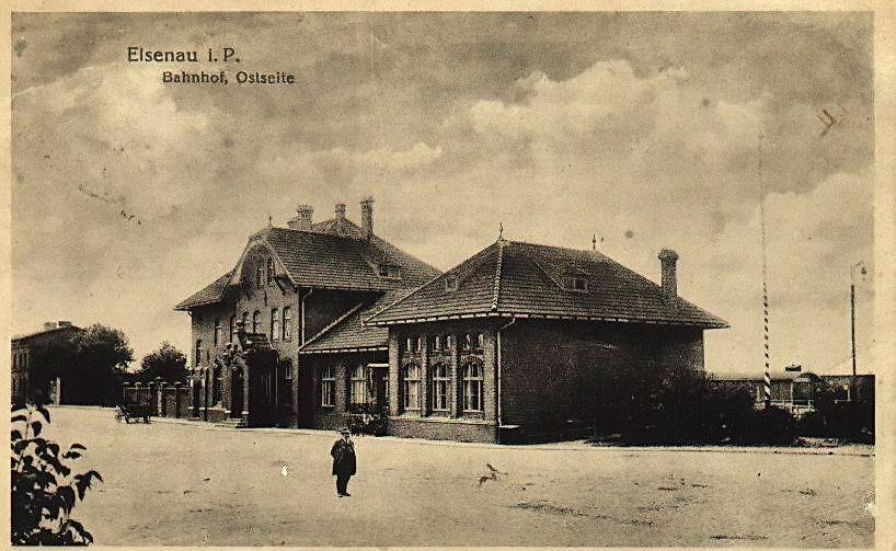 W lewym, górnym polu budynek dworca od strony peronów. Ze zbiorów Miłosza Telesińskiego.