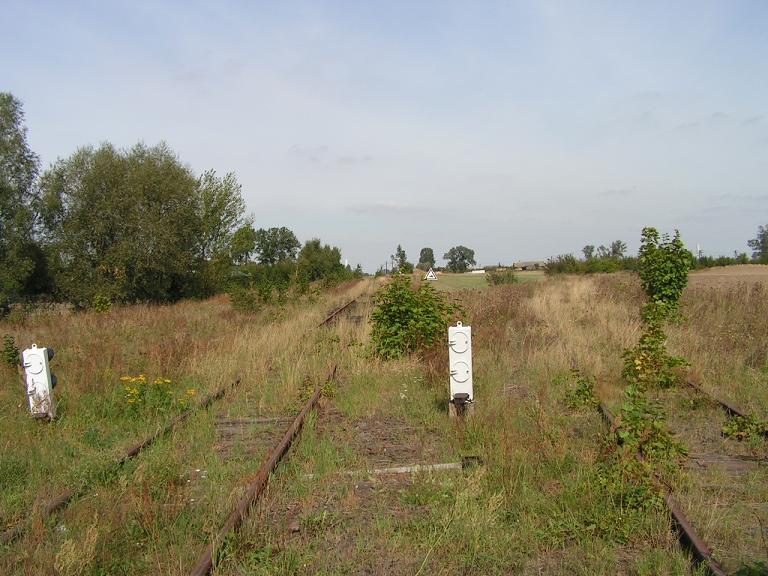 Wyjazd z Damasławka - lewy tor prowadzi do Kcyni, prawy do Żnina.