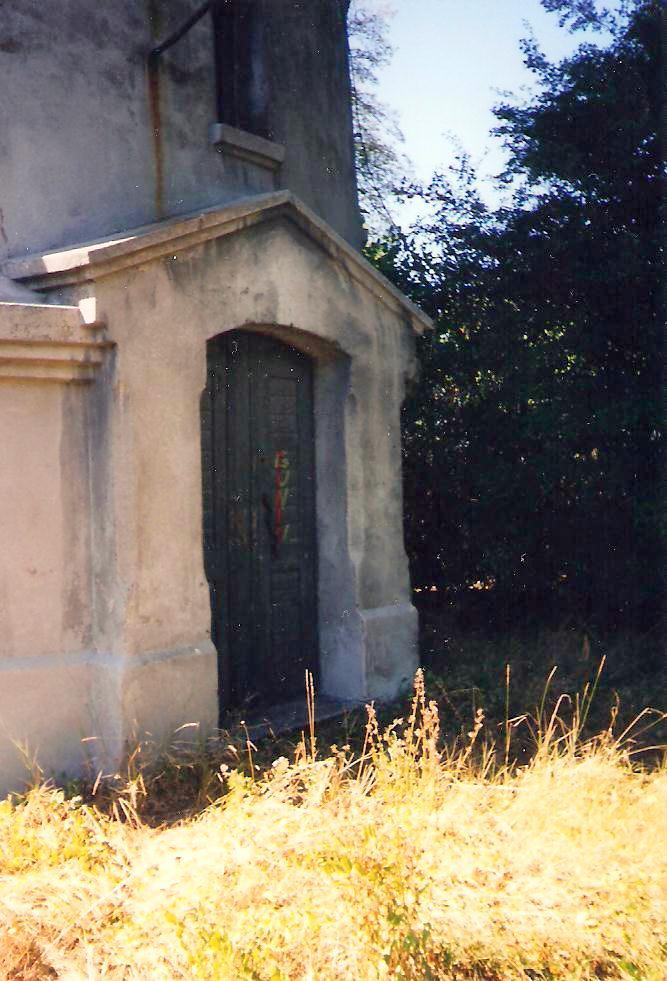 Damasławek. Wskaźnik poziomu wody w zbiorniku wieży wodnej nad wejściem do wieży.