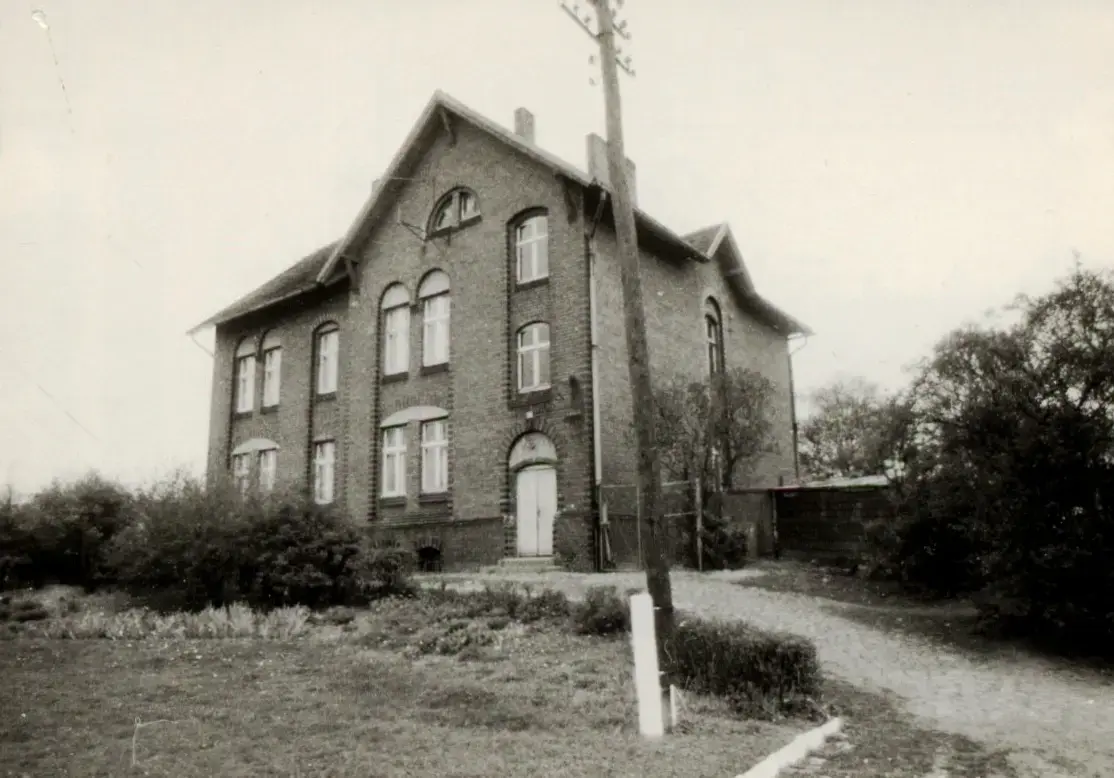 Kolejowy budynek mieszkalny widziany do strony dworca w kierunku wschodnim.