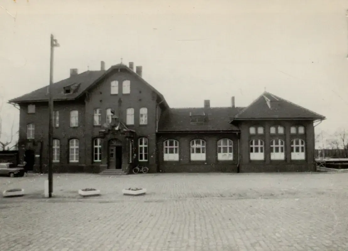 Budynek dworca od strony podjazdu. Widok w kierunku południowo-zachodnim. Ze zbiorów Miłosza Telesińskiego.