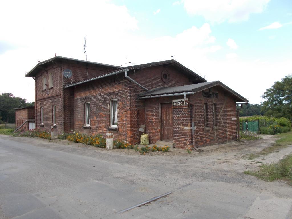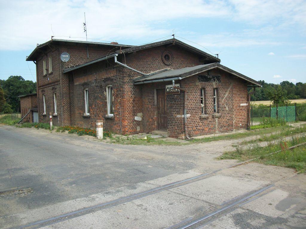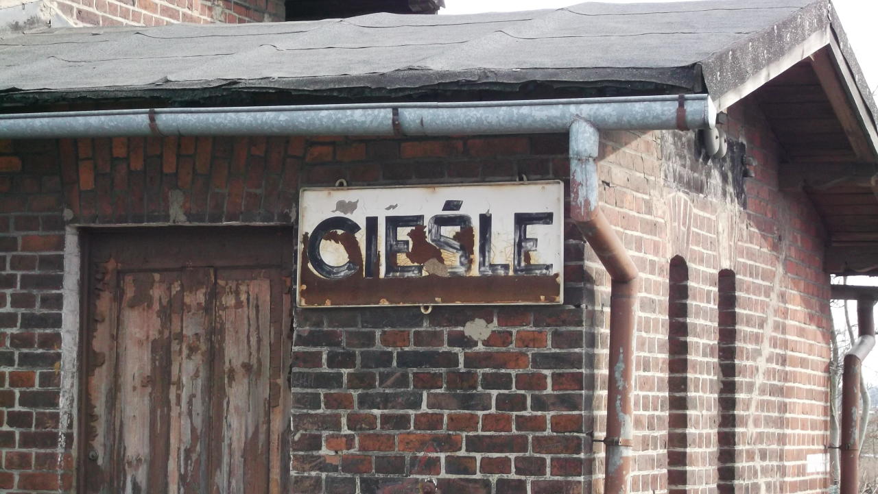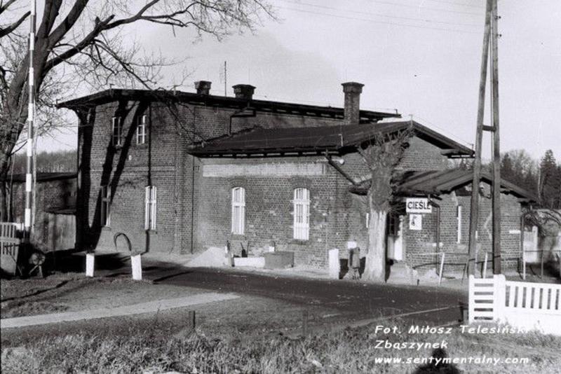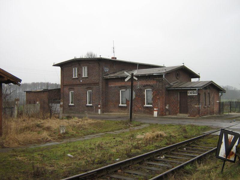 Cieśle, widok w kierunku Sycowa. Z lewej strony fragment dawnego budynku dworca.