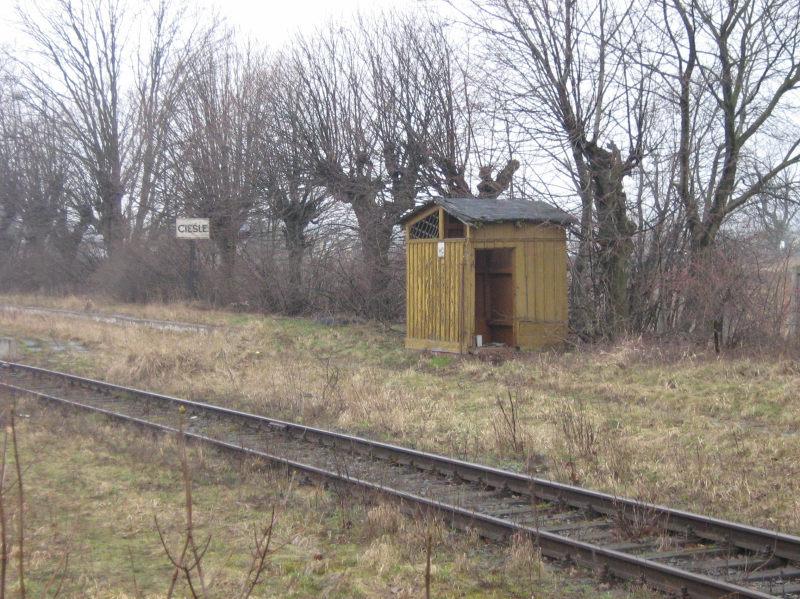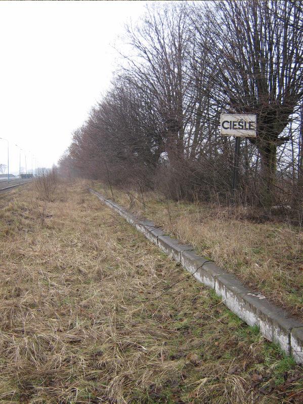 Cieśle, widok w stronę Oleśnicy. Z prawej peron, z lewej wjazd na plac przeładunkowy.