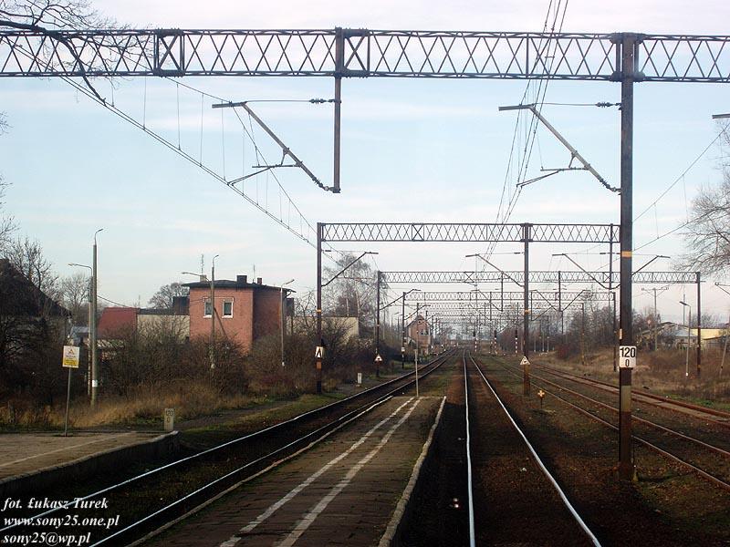 Ogólny widok na stację od strony wjazdu z Namysłowa, w kierunku północno-zachodnim.