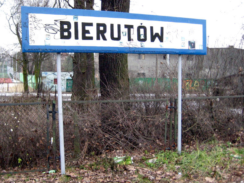 Wjazd do Bierutowa od strony Namysłowa. Po lewej, w wysokiej trawie powinien znajdować się tor do cukrowni (?). Obecnie cukrownia jest nieczynna. Kierunek północno-zachodni.