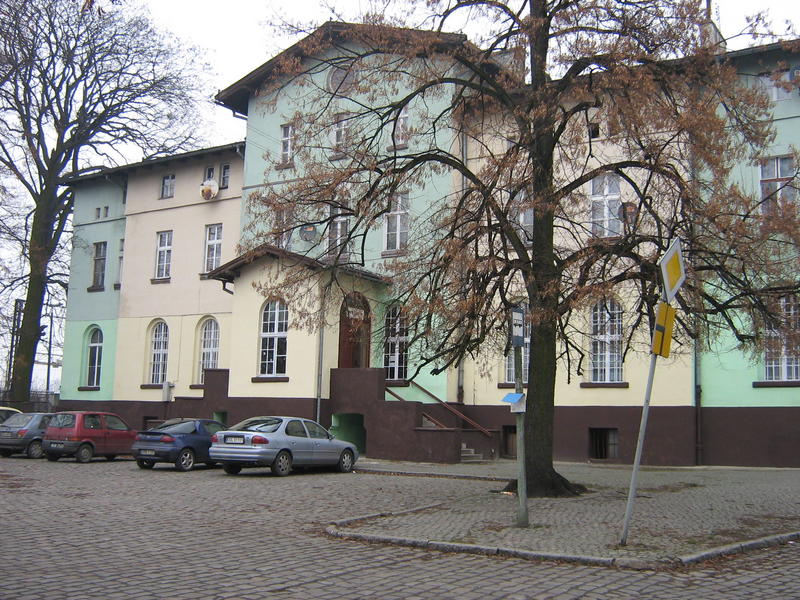 Stacja PKP Bierutów. Budynek dworca od strony miasta.