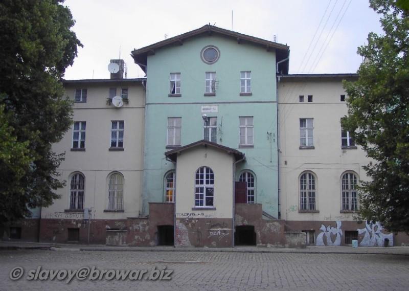 Stacja PKP Bierutów. Budynek dworca od strony podjazdu; ściana szczytowa.