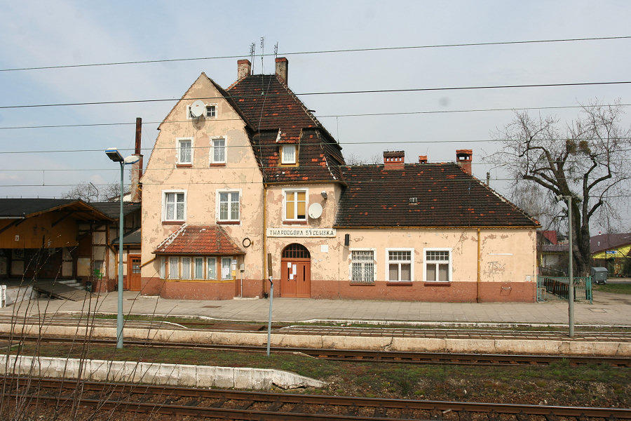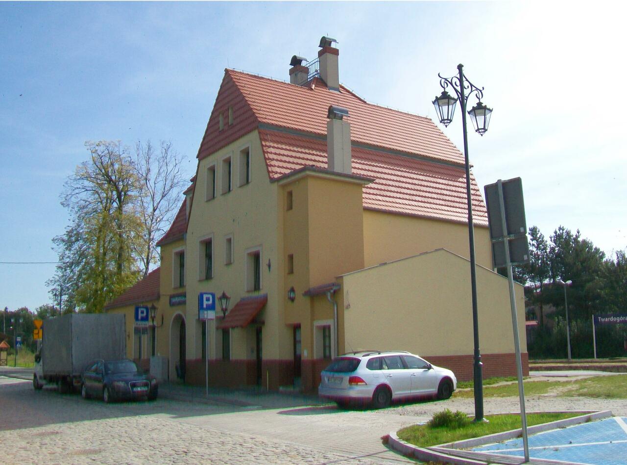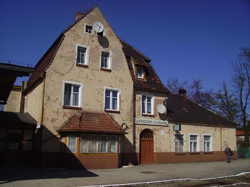 Budynek dworca w Twardogórze Sycowskiej - widok od strony miasta.