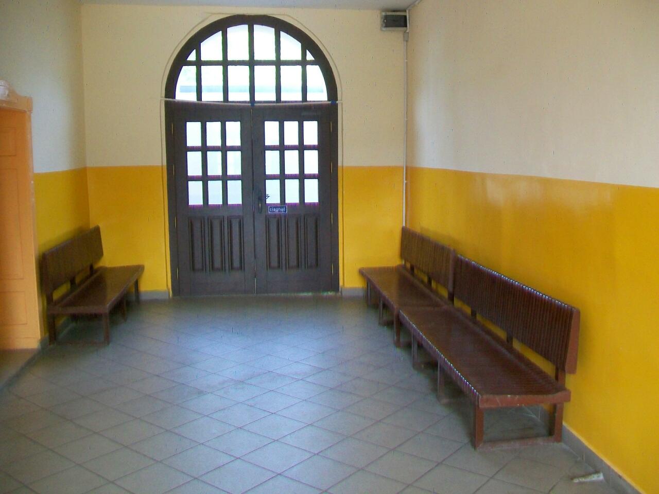 Wyremontowana poczekalnia z wyjście do miasta. Po remoncie pozostawiono oldskulowe ławki.