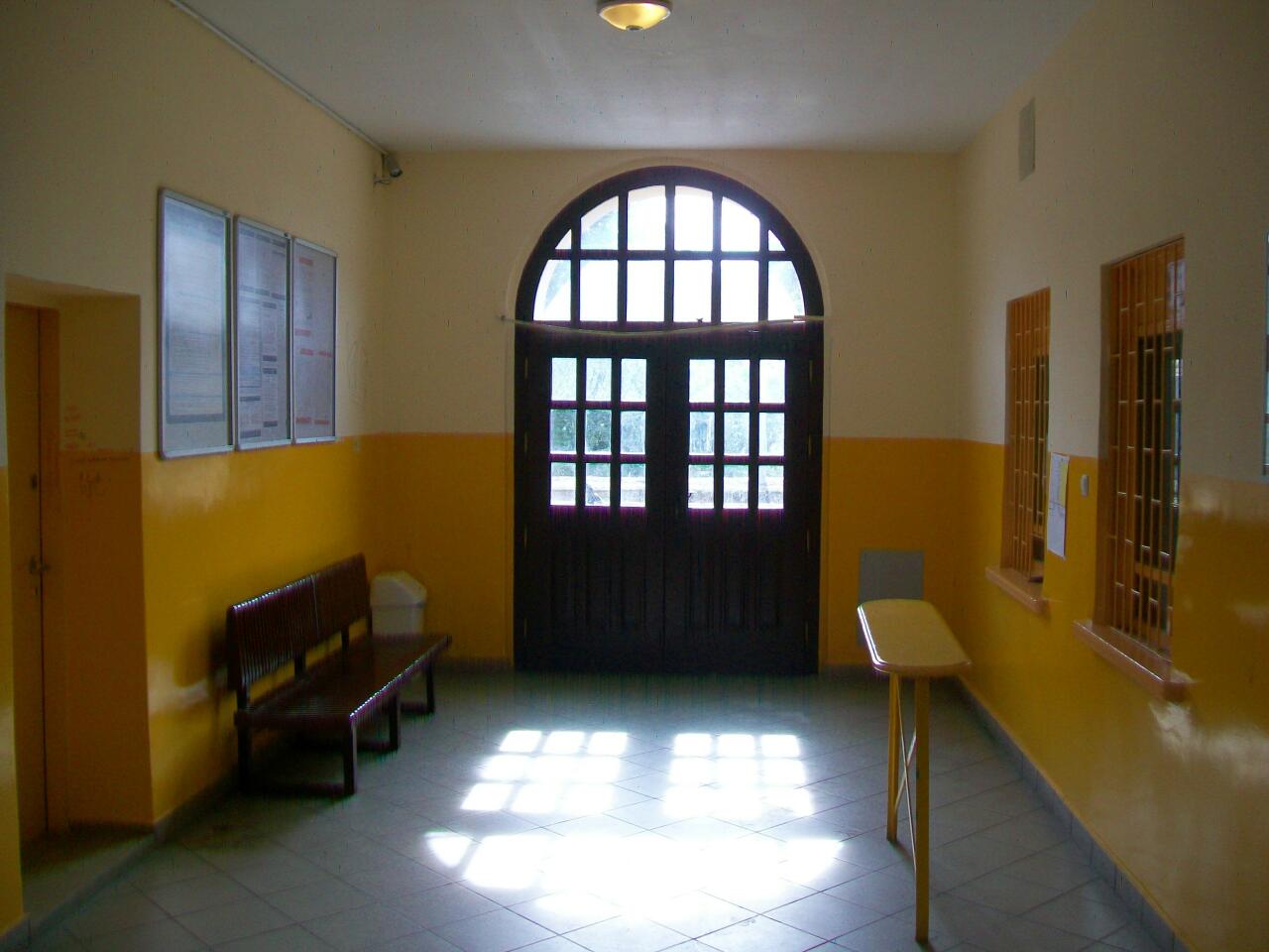 Wyremontowana poczekalnia z wyjście na perony. Z prawej nieczynne okienka kasowe.