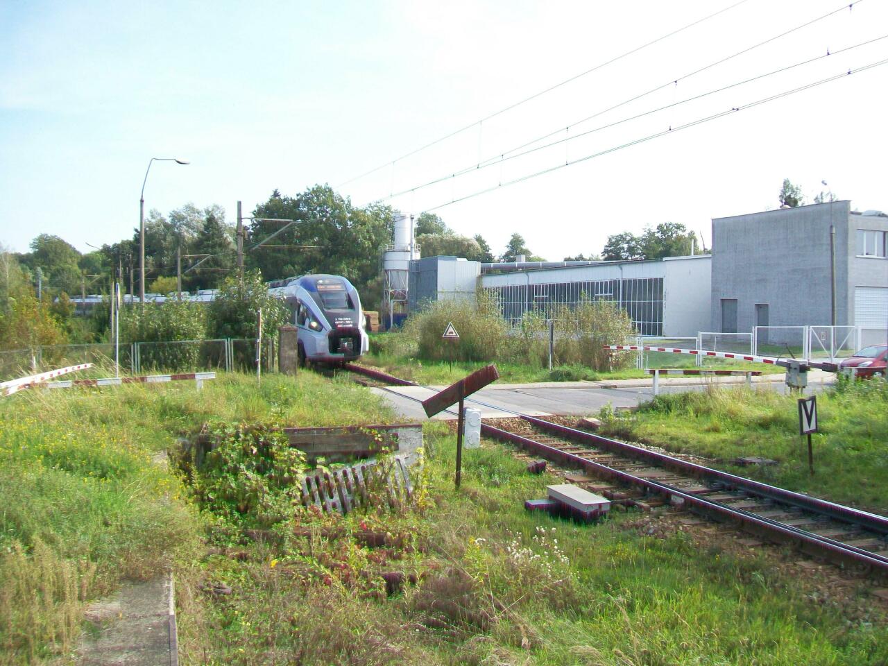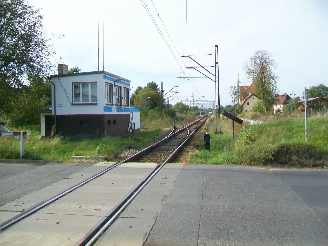 Przejazd kolejowy przez ul. Oleśnicą. Za nim nastawnia dysponująca Tw oraz nieczynna rampa-boczno czołowa. Pomiędzy nimi zaczyna się droga zwrotnicowa od strony Ostrowa Wielkopolskiego. Widok w kierunku zachodnim.