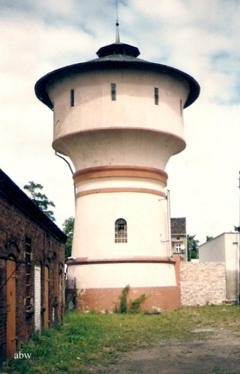 Wieża wodna stoi przy ul Długiej niedaleko skrzyżowania z ul. Wojska Polskiego i przejazdu w ul. Wojska Polskiego. Wieża została zbudowana w 1909 r., posiada zbiornik wody o pojemności 50 m3, stan zewnętrzny jeszcze niezły. Podobne wieże stoją m.in. na stacjach Drzewce, Kościan, Opalenica i Żmigród. (info: Bolesław Wojtyniak, 22-07-2011). jest, stan zewnętrzny dobry, wewnętrzny - nierozpoznany |
