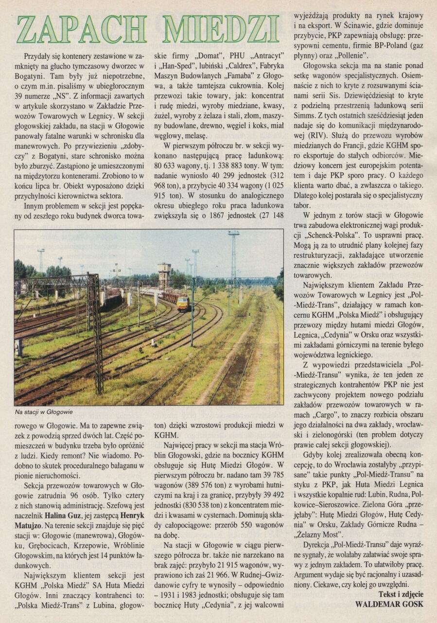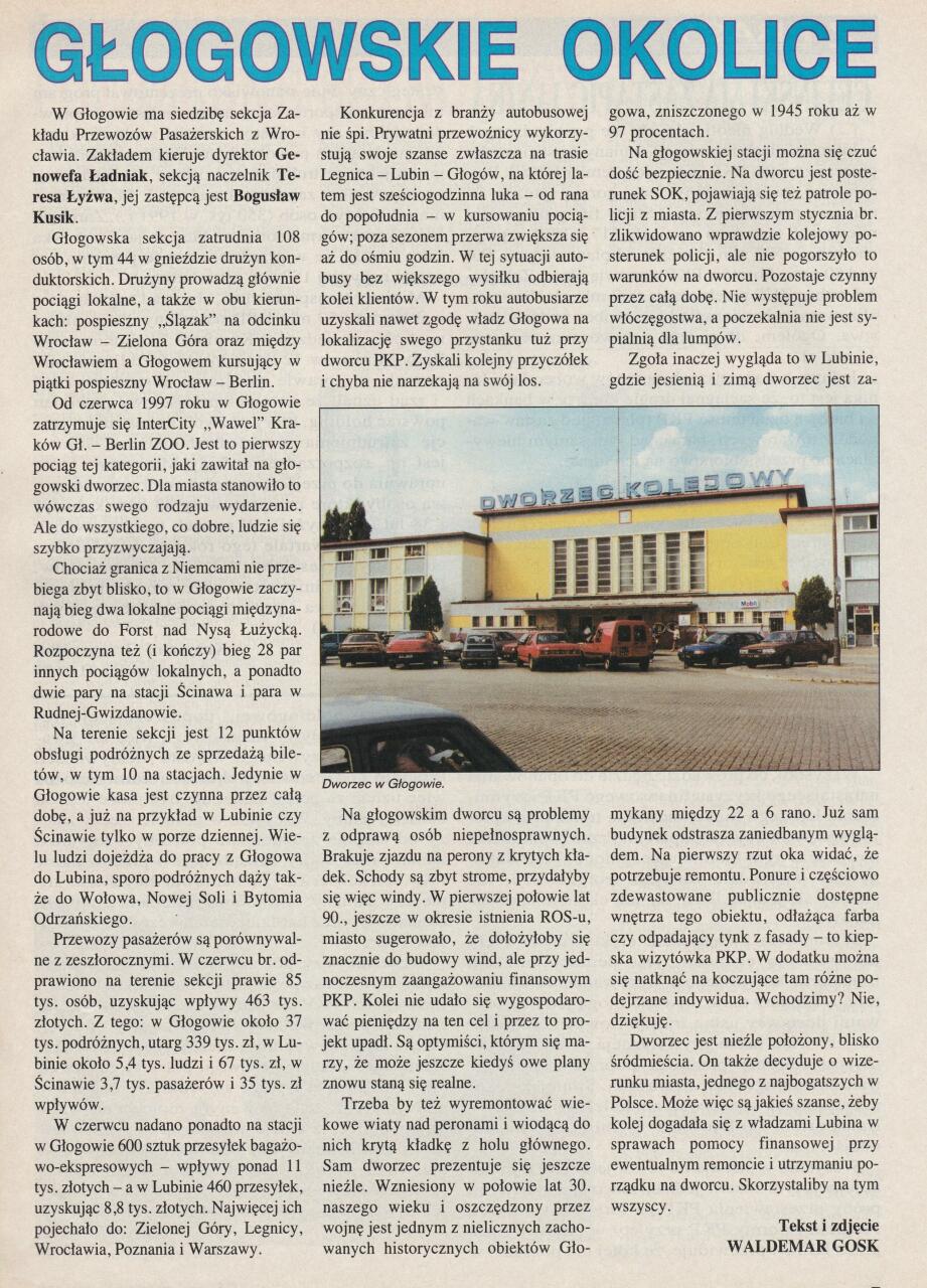 Głogów kiedyś mógł się równać z Wrocławiem czy Legnicą, taki był ruch pasażerski. Nie na darmo nakręcili ostatnie sceny filmu "Farba" Michała Rosy. Pamiętam to do dzisiaj i Agnieszkę Krukównę w roli głównej.