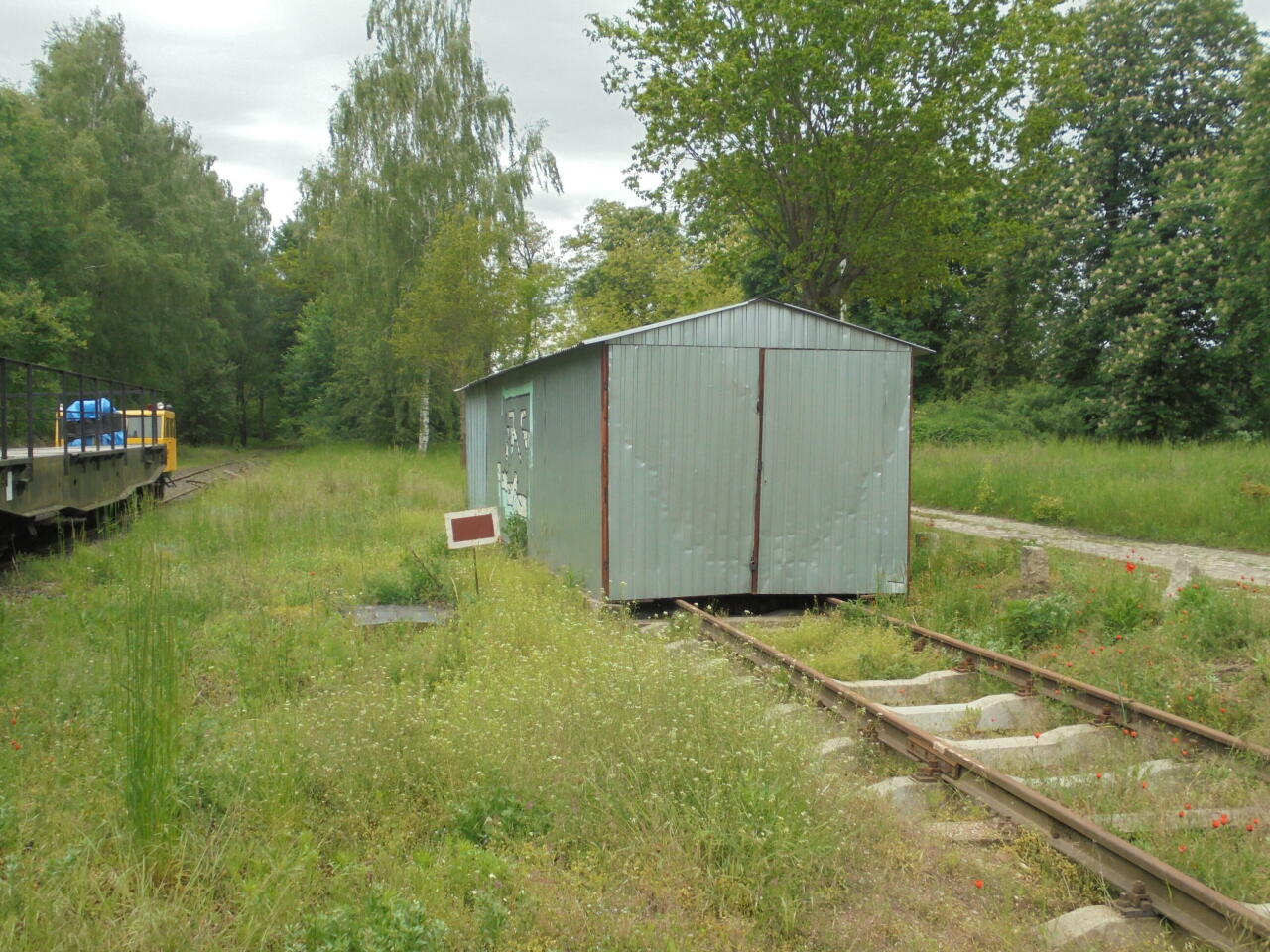 Ujazd Wielkopolski, tor w lesie, tuż kilkaset metrów przed dawną stacją. Wjazd od strony Grodziska Wielkopolskiego.