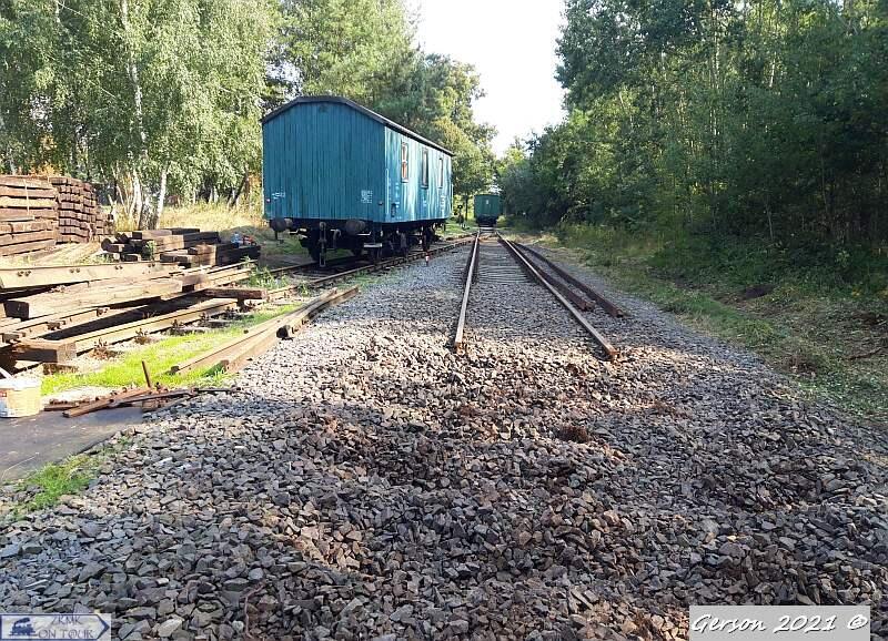 Wagoniki na terenie dawnej stacji.