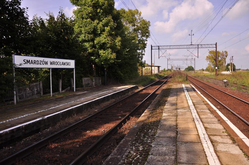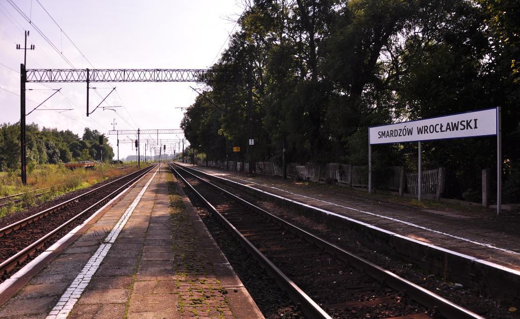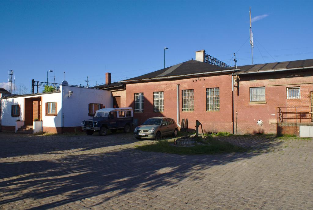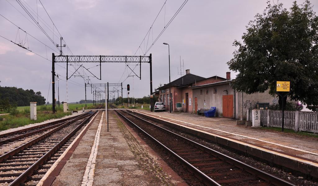Widok na budynek stacji wraz z posterunkiem dróżnika od strony Żernik Wrocławskich.