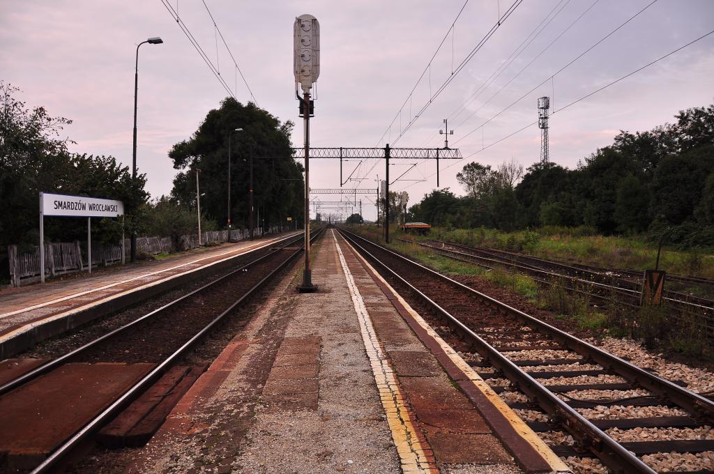 Widok z peronu 2 w kierunku Strzelina, Kłodzka Głównego, Międzylesia.