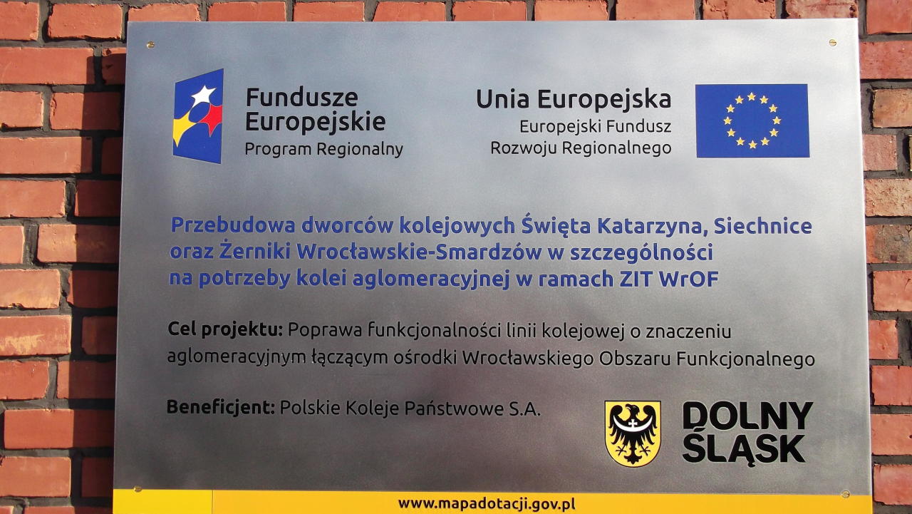 Tablica informacyjna o współfinansowaniu projektu z funduszy Unii Europejskiej.