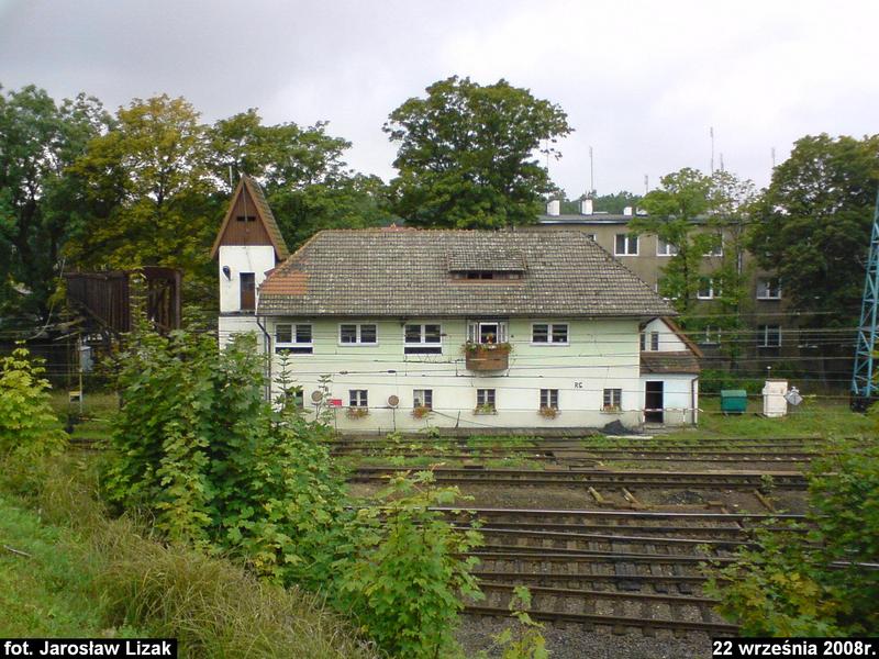 Nastawnia południowa (dysponująca),. Na drugim planie most drogowy.