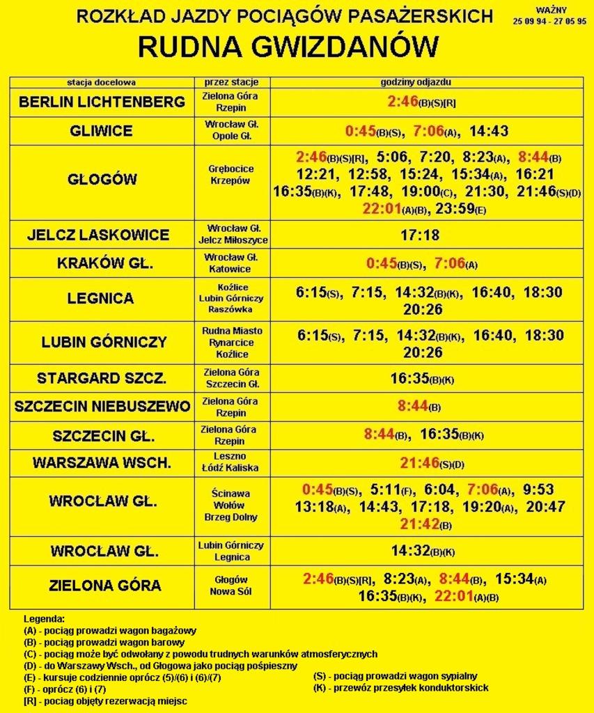 Rozkład jazdy pociągów ważny w okresie 25 IX 1994 - 27 V 1995.