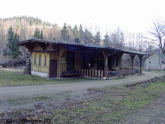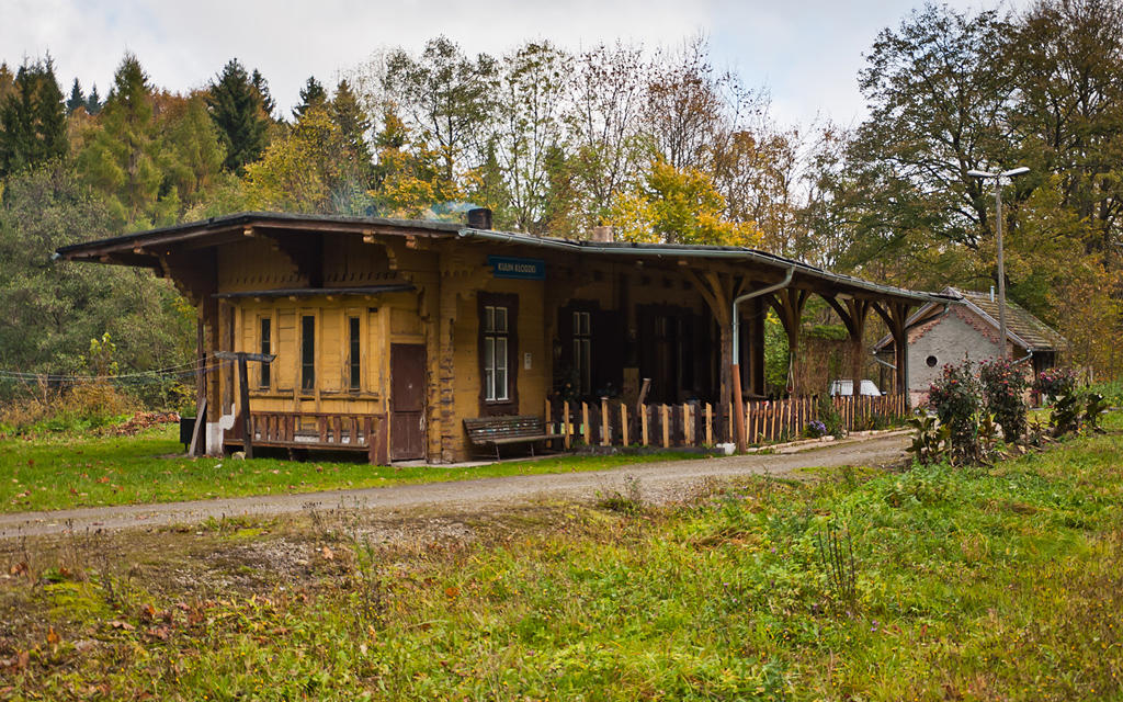 Przystanek kolejowy w Kulinie Kłodzkim - tajemniczy budynek ;) Budynek dworca znajduje się z lewej strony, poza kadrem.