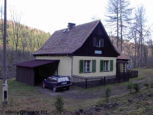 Prawdopodobnie budynek mieszkalny dla pracowników, bo na dawną nastawnię trochę nie wygląda. Stoi na wyjeździe do Kudowy-Zdrój (w lewo). Widok w kierunku północno-wschodnim.