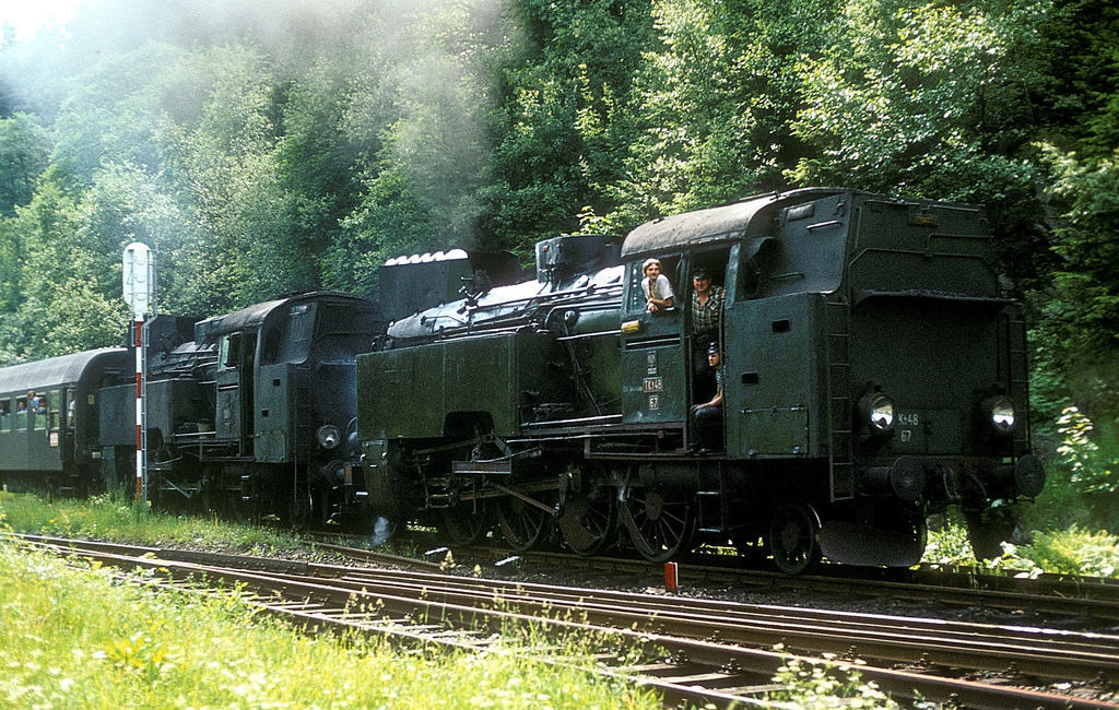 Kulin Kłodzki jeszcze jako stacja, z czynnymi torami dodatkowymi i urządzeniami srk. Tekatki w trakcji podwójnej prowadzą ciężki pociąg pasażerski w kierunku Kudowy-Zdrój.