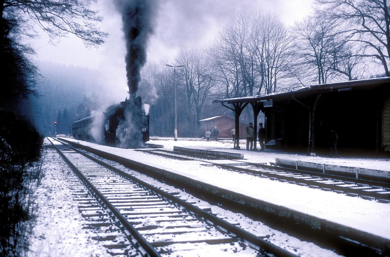 Pocztówka ze zbiorów Adama Pacześniaka. Widok na stację w kierunku wschodnim (Duszniki-Zdrój). Przed budynkiem dworca stoi nieistniejący obecnie magazyn towarowy; w tle zaś jasny budynek mieszkalny nr 3, który od wielu lat niszczeje opuszczony.