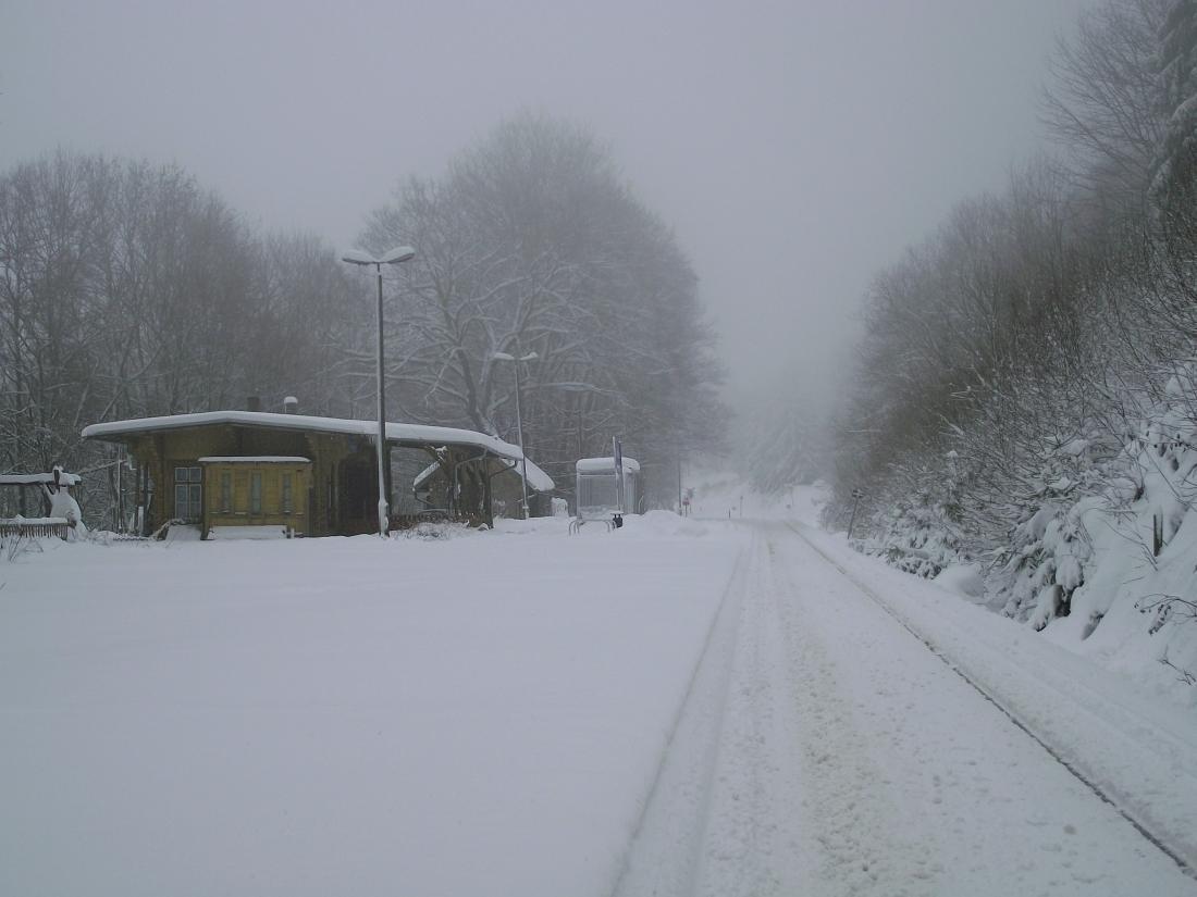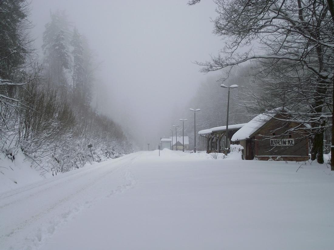 Dojazd do dawnej stacji, jak widać zimą bywa tu bardzo śnieżnie.