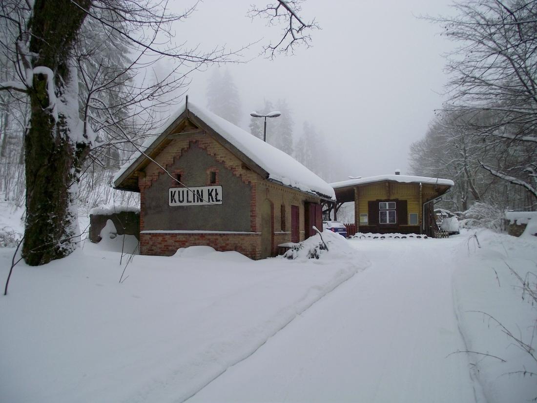Budynek stacyjny przy przystanku kolejowym w Kulinie Kłodzkim - obecnie zamieszkany. Peron znajduje się z lewej strony obiektu. Widok od strony podjazdu w kierunku zachodnim (Kudowa-Zdrój).