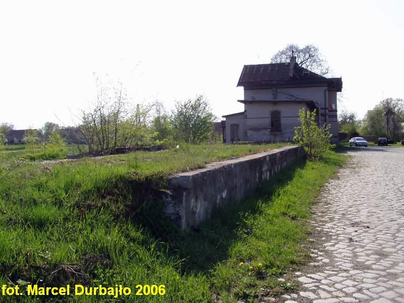 Opis infrastruktury: Stacja posiada rampę załadunkową (dużą). Oprócz toru głównego zasadniczego znajdują się 2 tory dodatkowe - jeden obok rampy, drugi kończy się przy dworcu. Oba niezdatne do użytku ze względu na rosnące drzewka. Na stacji stwierdzono preonów 1 i ślad po 2-gim peronie wyspowym przy którym tor został rozebrany. (info: Marcel Durbajło, 2006-05-03) Opis budynków: Na stacji znajduje się budynek połączony z magazynem oraz nastawnią. Brak wieży ciśnień oraz drugiej nastawni. Dodatkowo znajduje się budynek WC. (info: Marcel Durbajło, 2006-05-03) |